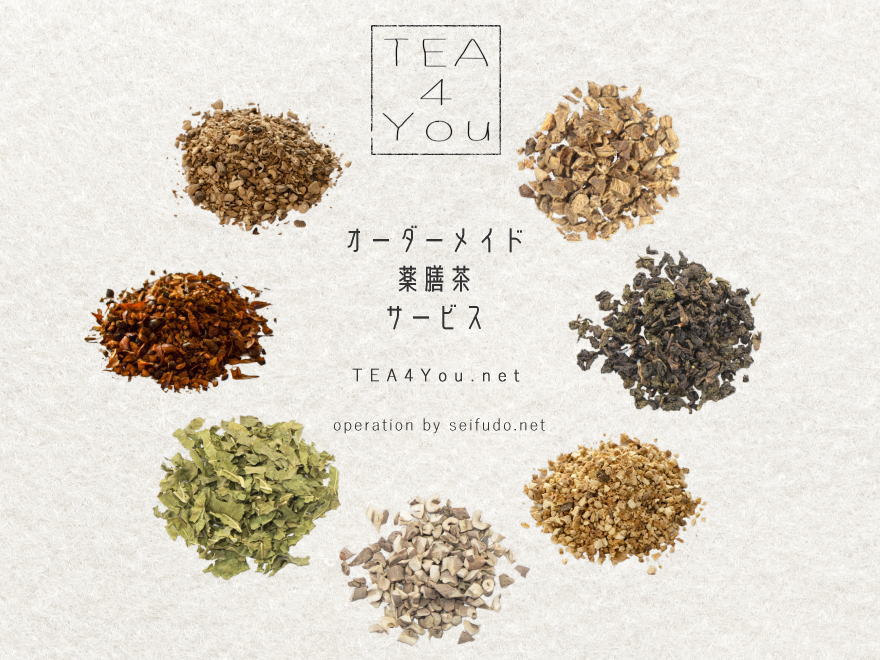 TEA 4 You-「自身に合った自身のための薬膳茶」-専用の体質チェックシートでご自身の体質・体調をチェックしていただき、チェック結果に合わせた薬膳茶を作ります。薬膳茶は、事前にアンケートでお好みをお伺いした上で、80~100種類の茶葉や...