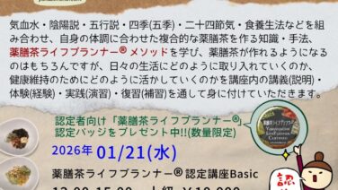 教室・講座 【募集】01/21(水)薬膳茶ライフプランナーBasic上級・認定