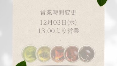 お知らせ 【営業時間変更】12/03(水)午後から営業