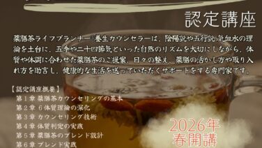 教室・講座 【満員】01/24(土)薬膳茶ライフプランナー認定講座「Basic」1Day認定レッスン